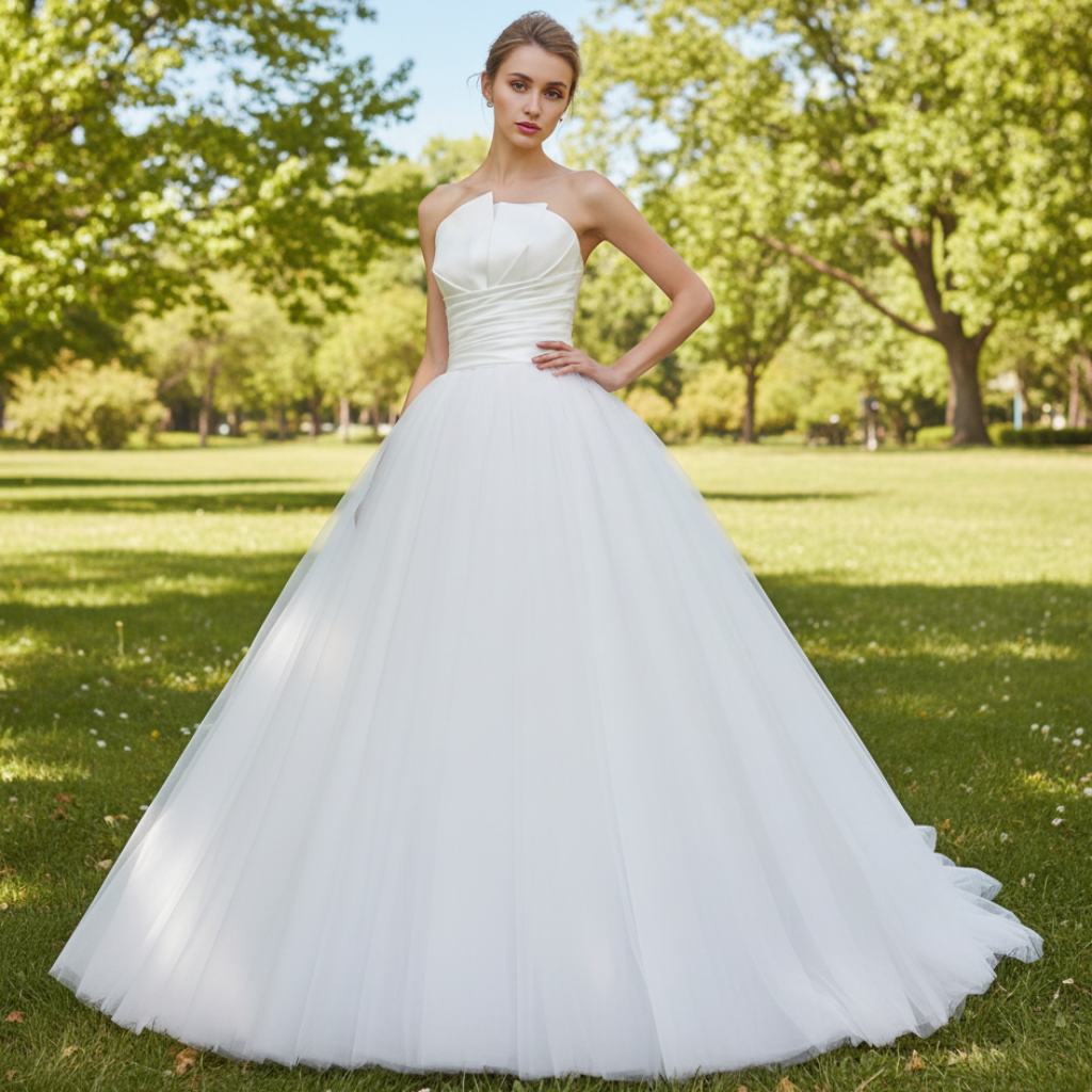 Robe de mariée simple sans bretelles à encolure asymétrique unique