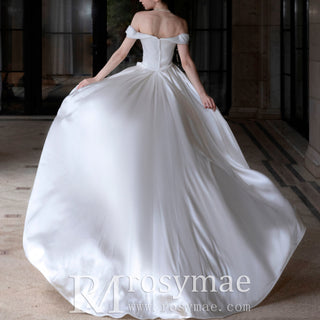 Robe de mariée en satin Hi-Lo au-dessus du genou avec épaules dénudées