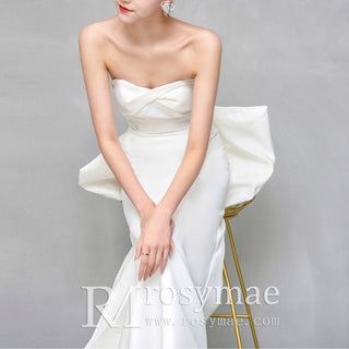 Robe de mariée évasée en satin, coupe classique et élégante, avec gros nœud dans le dos, sans bretelles avec décolleté droit froncé, robe fourreau pour mariage sur la plage ou en plein air, milieu du dos avec fermeture à lacets, petite traîne chapelle.