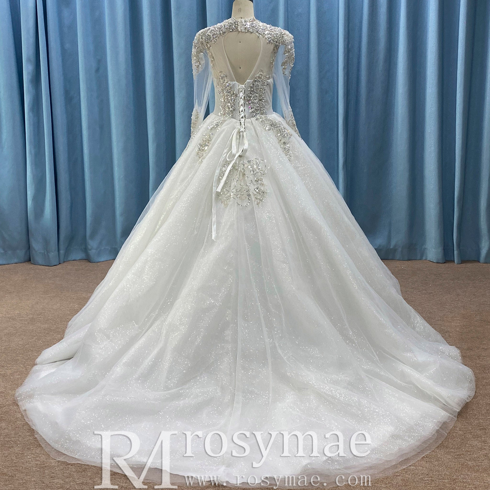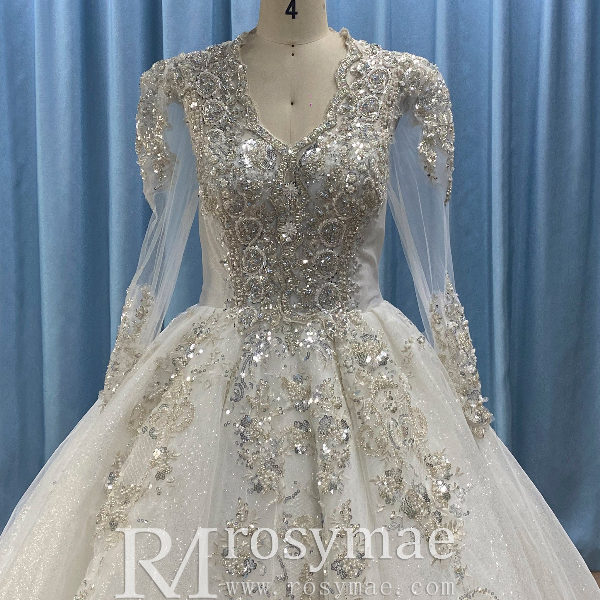 Robe de mariée scintillante avec manches longues transparentes