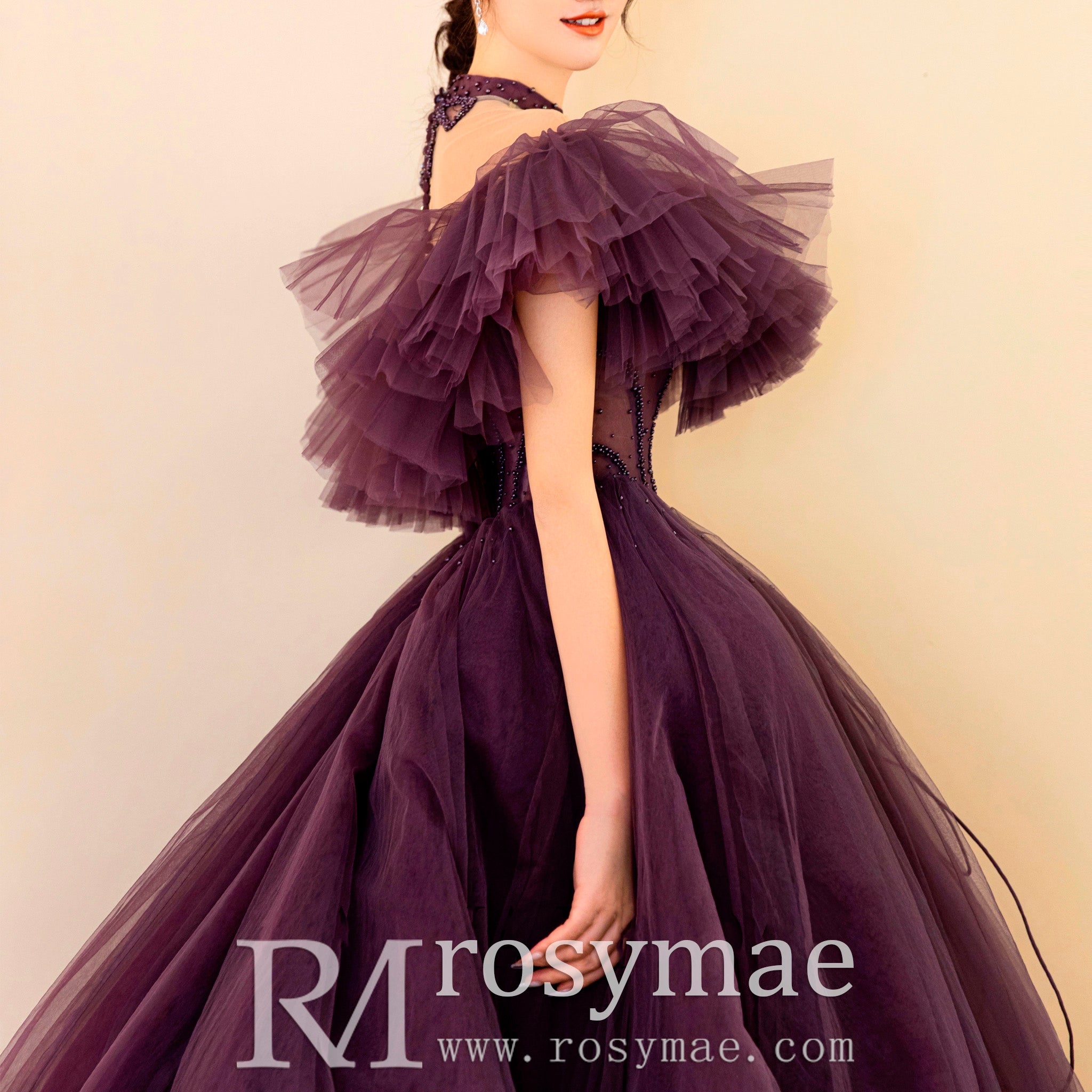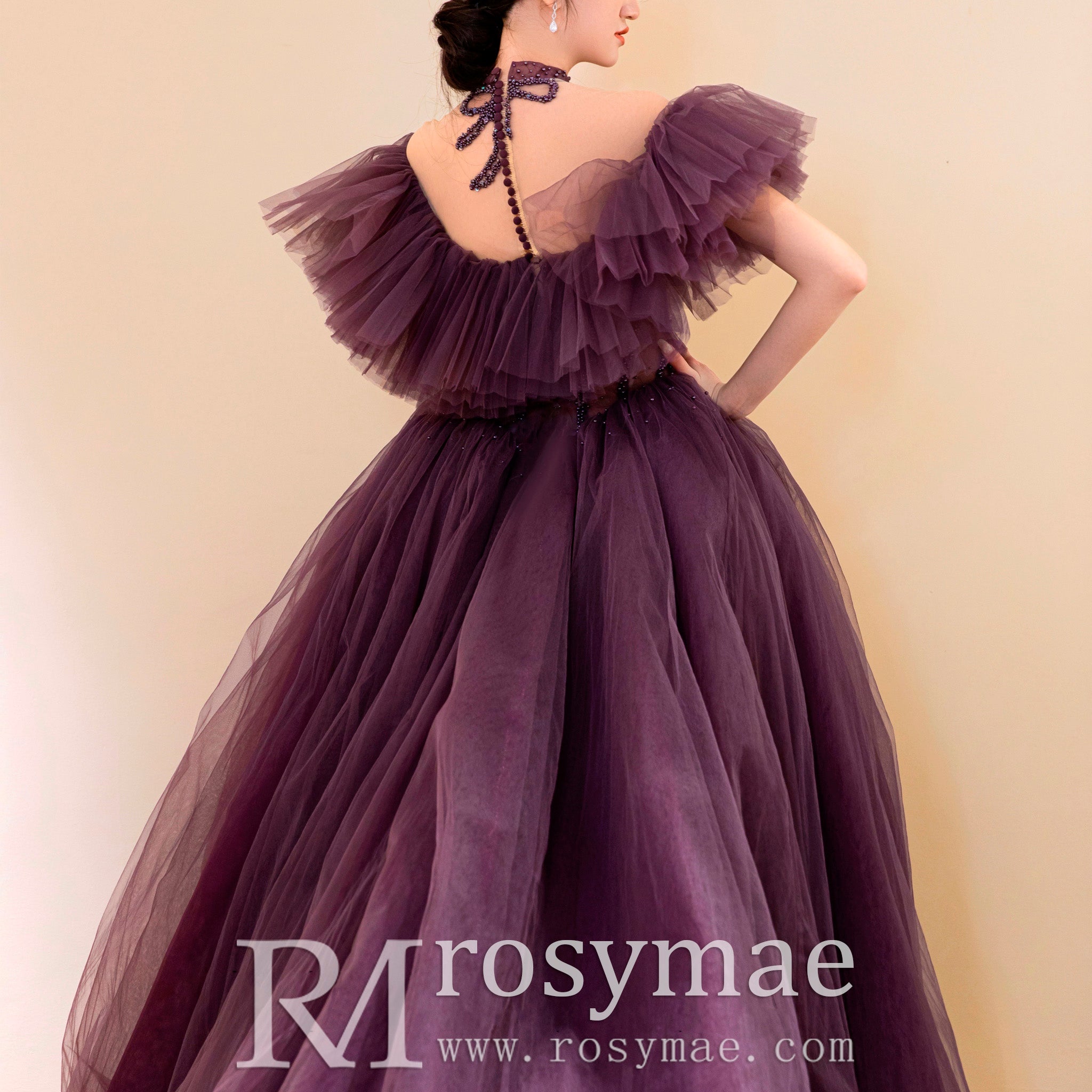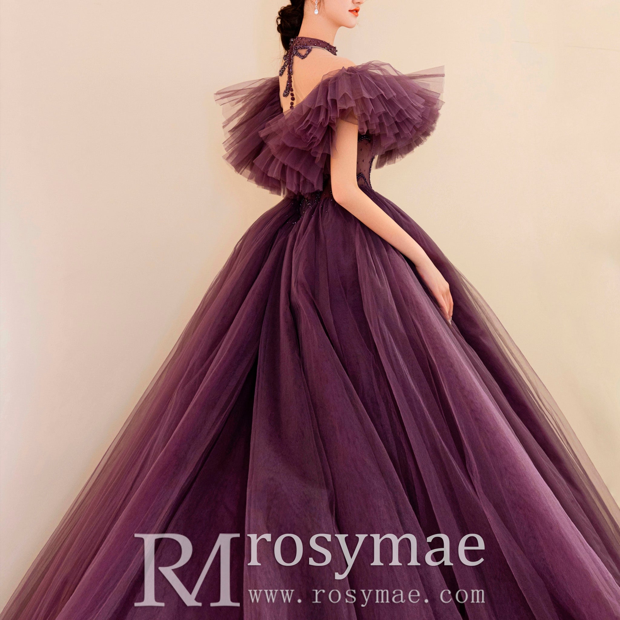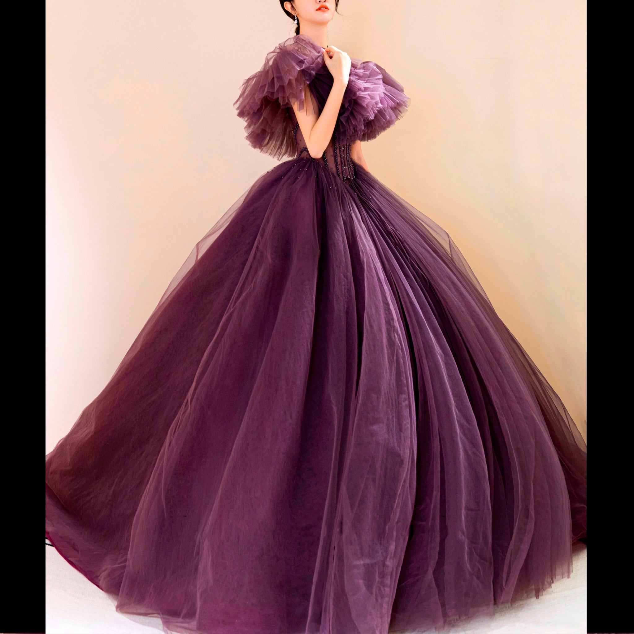 Cette magnifique robe de mariée violette bohème à épaules dénudées pour femme présente un magnifique design de robe de bal qui vous fera ressembler et vous sentir comme une princesse lors de votre journée spéciale. Le tissu luxueux et les détails complexes vous permettront de vous sentir en confiance et prêt à marcher dans l'allée avec style.