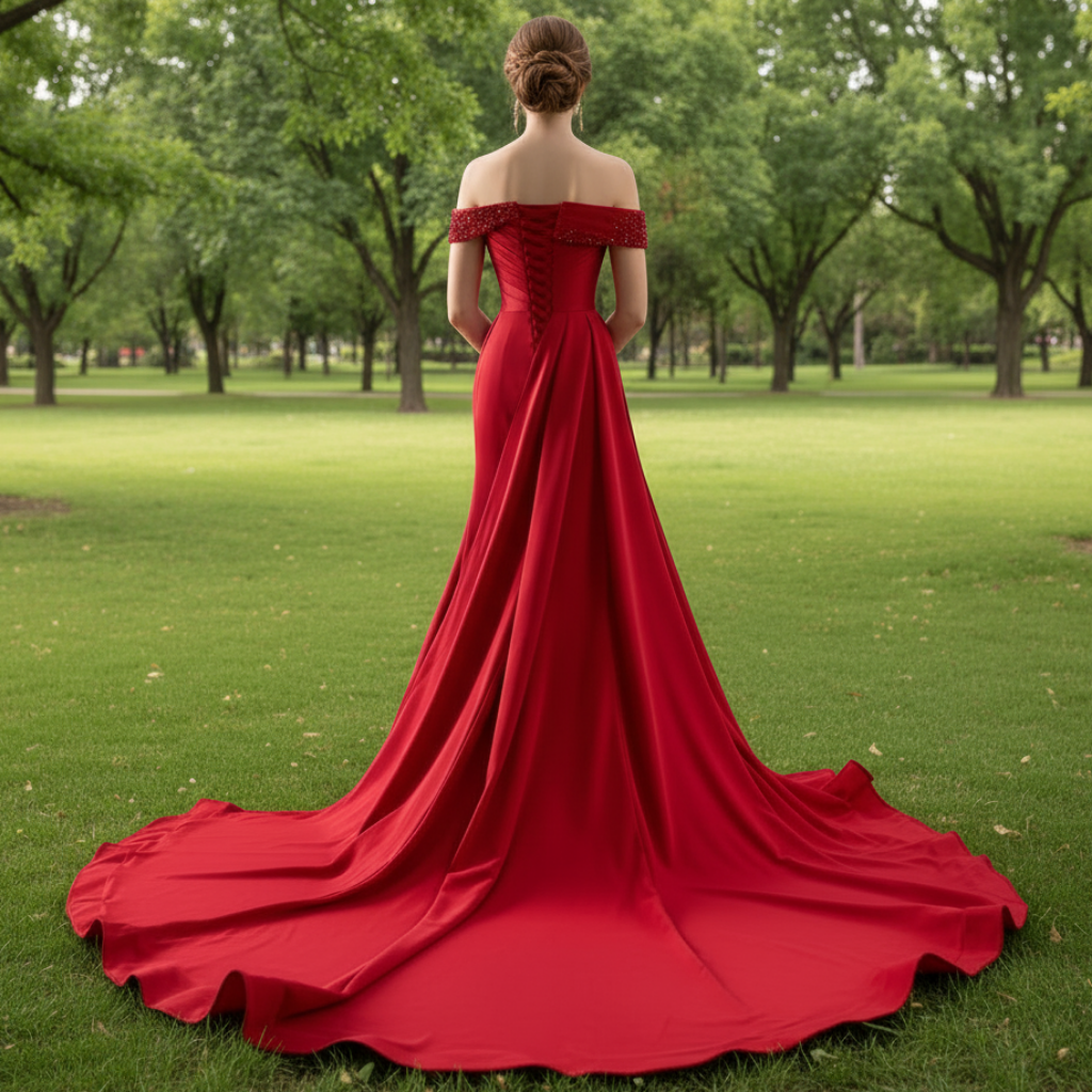 Faites sensation dans cette robe de bal sirène à couper le souffle, qui allie à la perfection audace et élégance raffinée. Son décolleté asymétrique, orné d'une épaule large et d'une épaule étroite et délicate, crée une silhouette avant-gardiste qui vous distinguera de toutes les autres. Chaque épaule est minutieusement cousue à la main avec des perles scintillantes qui captent la lumière à chaque mouvement, ajoutant une touche glamour témoignant d'un savoir-faire exceptionnel. Le satin rouge profond, aux reflets précieux, est d'une douceur luxueuse et drape avec grâce, épousant vos courbes avec élégance. Les plis réalisés à la main sur le corsage et la jupe créent une texture en relief et un intérêt visuel, tout en sublimant votre silhouette naturelle grâce à une coupe sirène flatteuse qui allonge et définit vos formes. Cette robe n'est pas produite en série : c'est une véritable œuvre d'art à porter, entièrement confectionnée à la main pour garantir une qualité irréprochable et une attention particulière aux détails. La silhouette sirène, fluide et élégante, s'étire des hanches jusqu'à l'ourlet, créant une traîne raffinée qui ajoute une touche de glamour et de sophistication à chacun de vos mouvements. Que ce soit pour un bal de promo, un gala ou toute autre soirée élégante, cette robe vous donnera confiance en vous, vous rendra resplendissante et inoubliable. L'alliance de couleurs audacieuses, de broderies raffinées et d'une confection impeccable vous assurera une allure mémorable, révélant toute votre élégance.