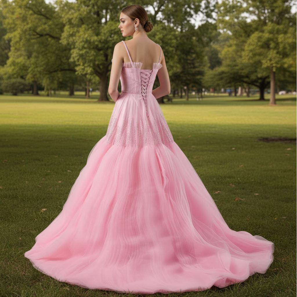 Robe de bal confectionnée à la main avec un savoir-faire exceptionnel, ornée de fines bretelles spaghetti et d'une élégance raffinée, idéale pour toute occasion formelle. Cette robe sophistiquée, parfaite pour un mariage, allie une qualité de fabrication supérieure à un design intemporel, garantissant une silhouette impeccable et une allure soignée tout au long de la soirée. Les détails faits main témoignent d'un artisanat méticuleux, tandis que le design minimaliste des bretelles offre polyvalence et grâce. Parfaite pour les bals de fin d'année, les galas, les mariages et les célébrations chics où l'élégance discrète est de mise. Sa silhouette soigneusement travaillée flatte toutes les morphologies tout en conservant une allure sophistiquée et raffinée, idéale pour les invitées les plus exigeantes.
