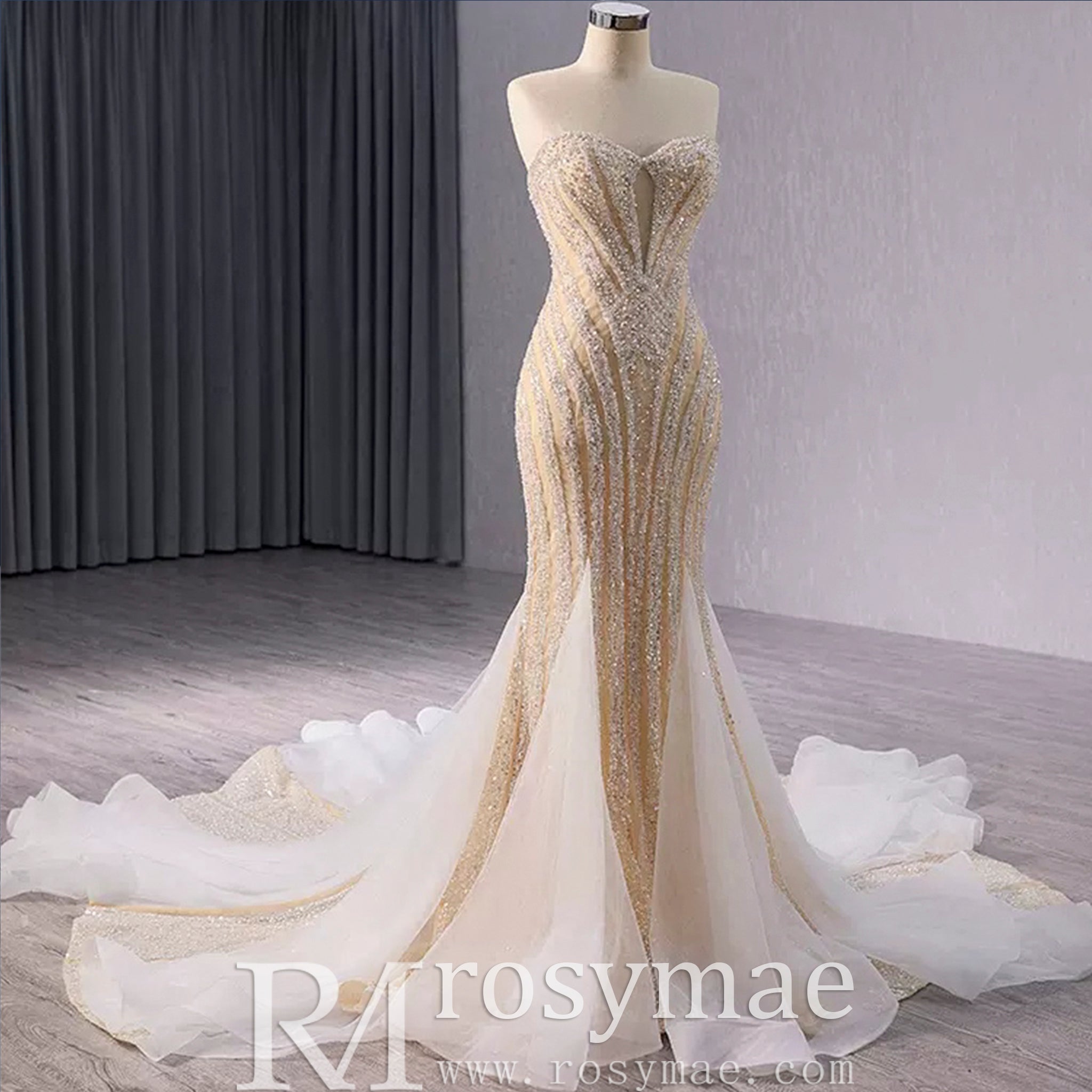 Indulge in luxury with this sparkly high-end champagne handmade beading pearl sequins evening eress! Handcrafted with intricate detail, these dresses will make you feel like royalty. The sparkling beads and sequins will catch everyone's eye, making you the star of any event. Elevate your wardrobe and shine bright with our stunning evening dresses.