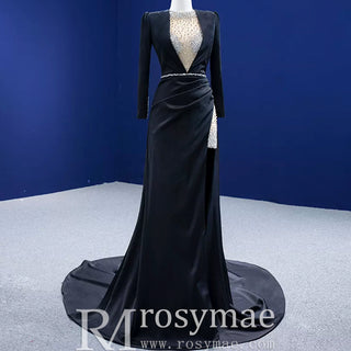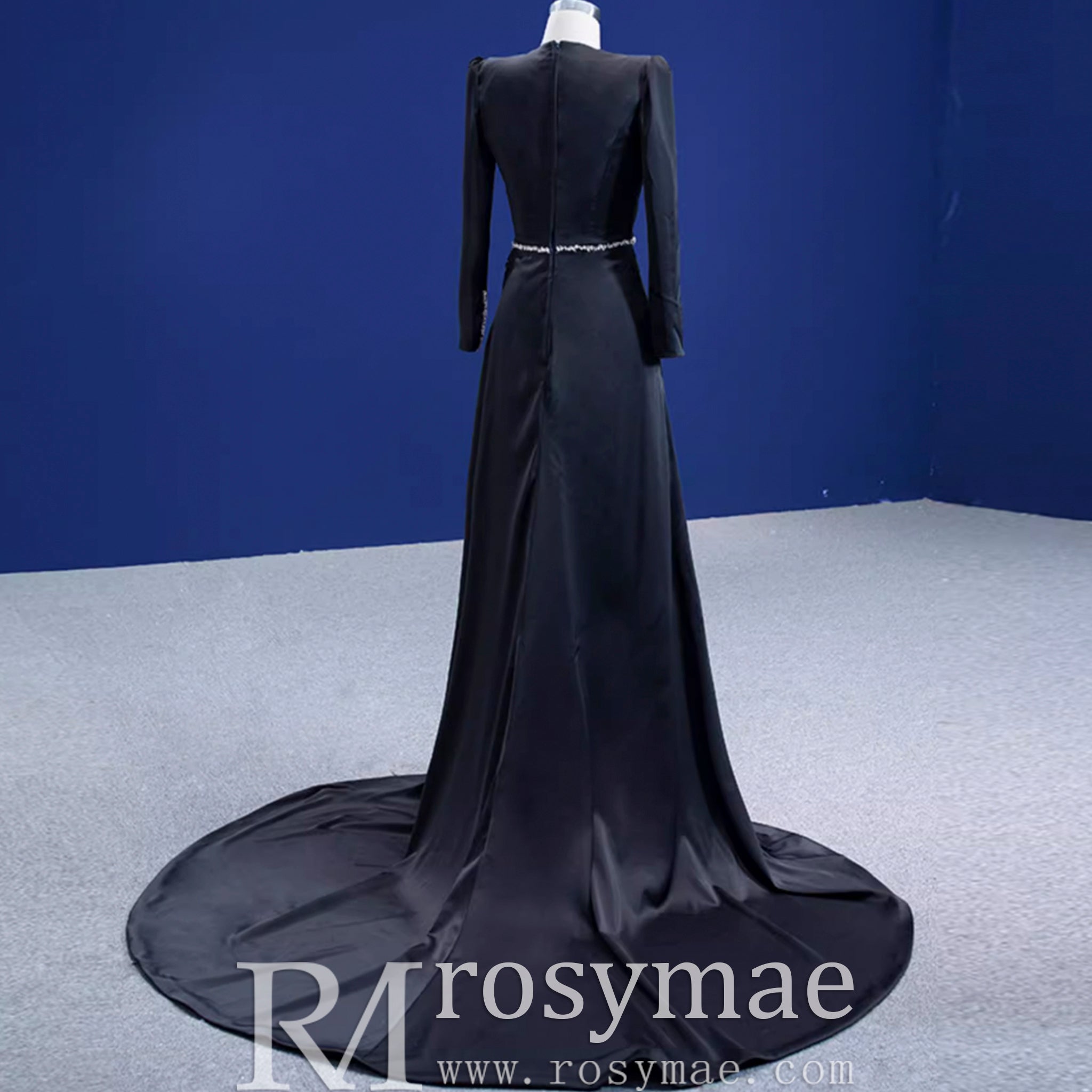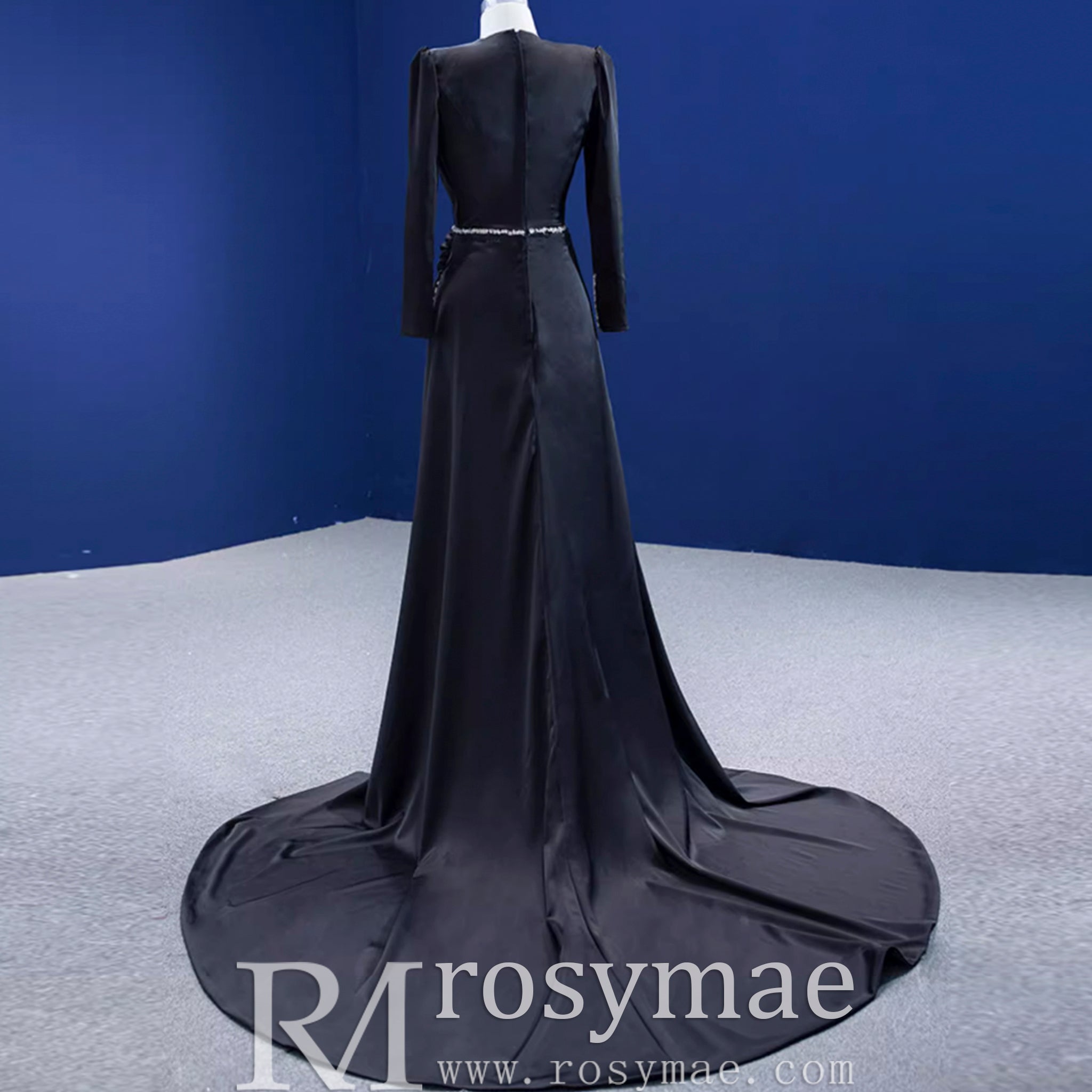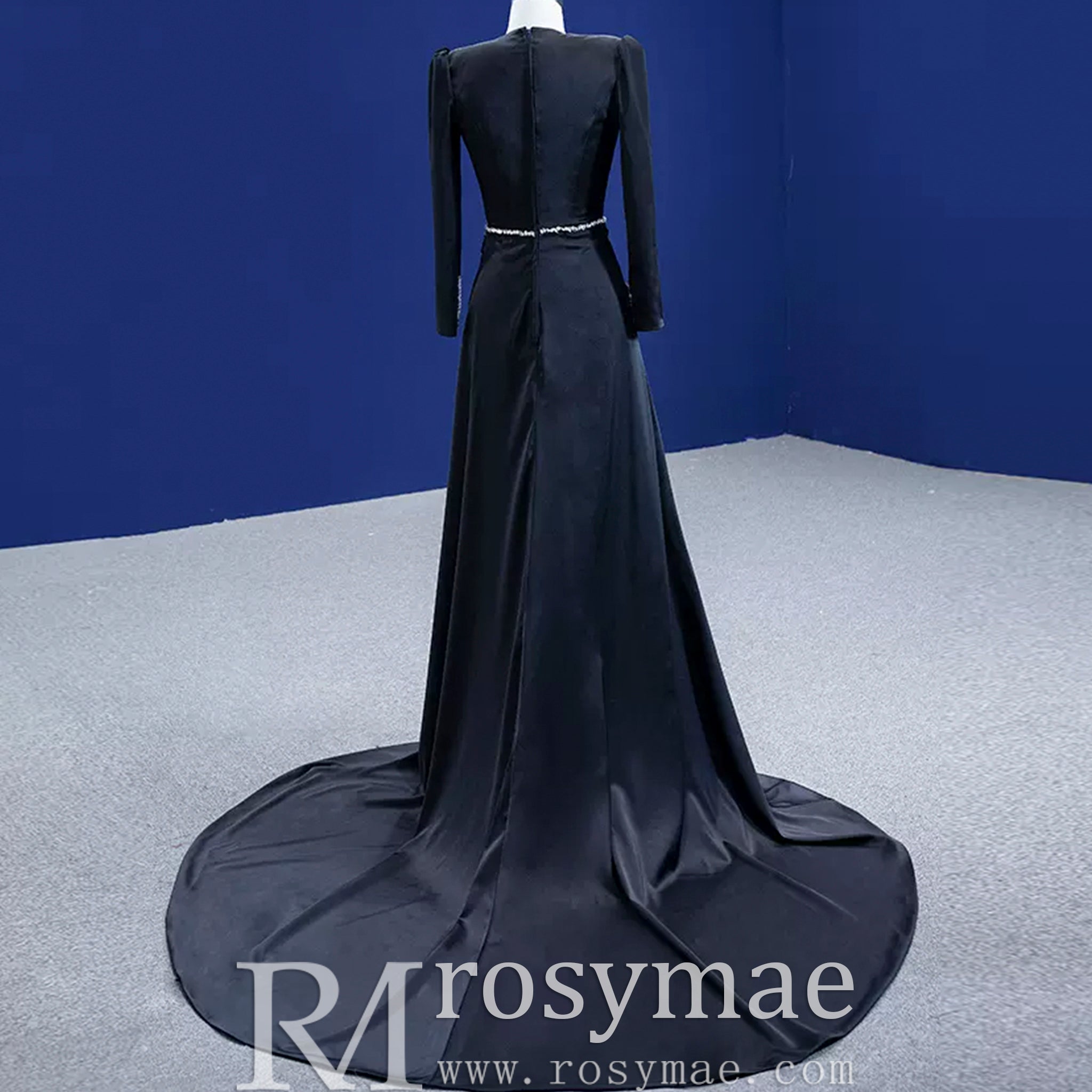 Elevate your formalwear game with this stunning black satin sheath prom dress! Featuring a mock neckline and sheer bodice, this dress is both elegant and charming. The suit design adds a touch of sophistication, while the leg slit adds a hint of drama. Perfect for prom or any special occasion.