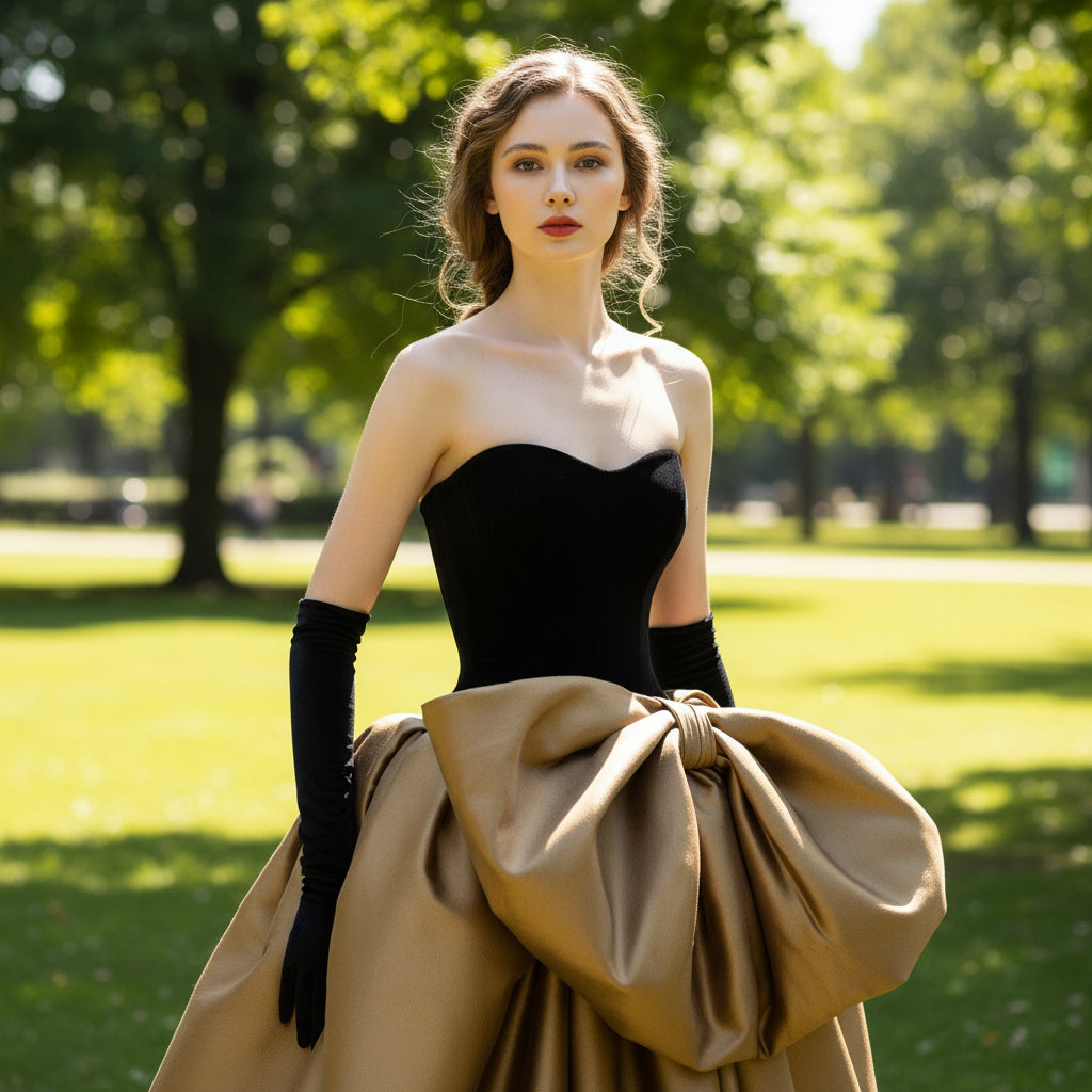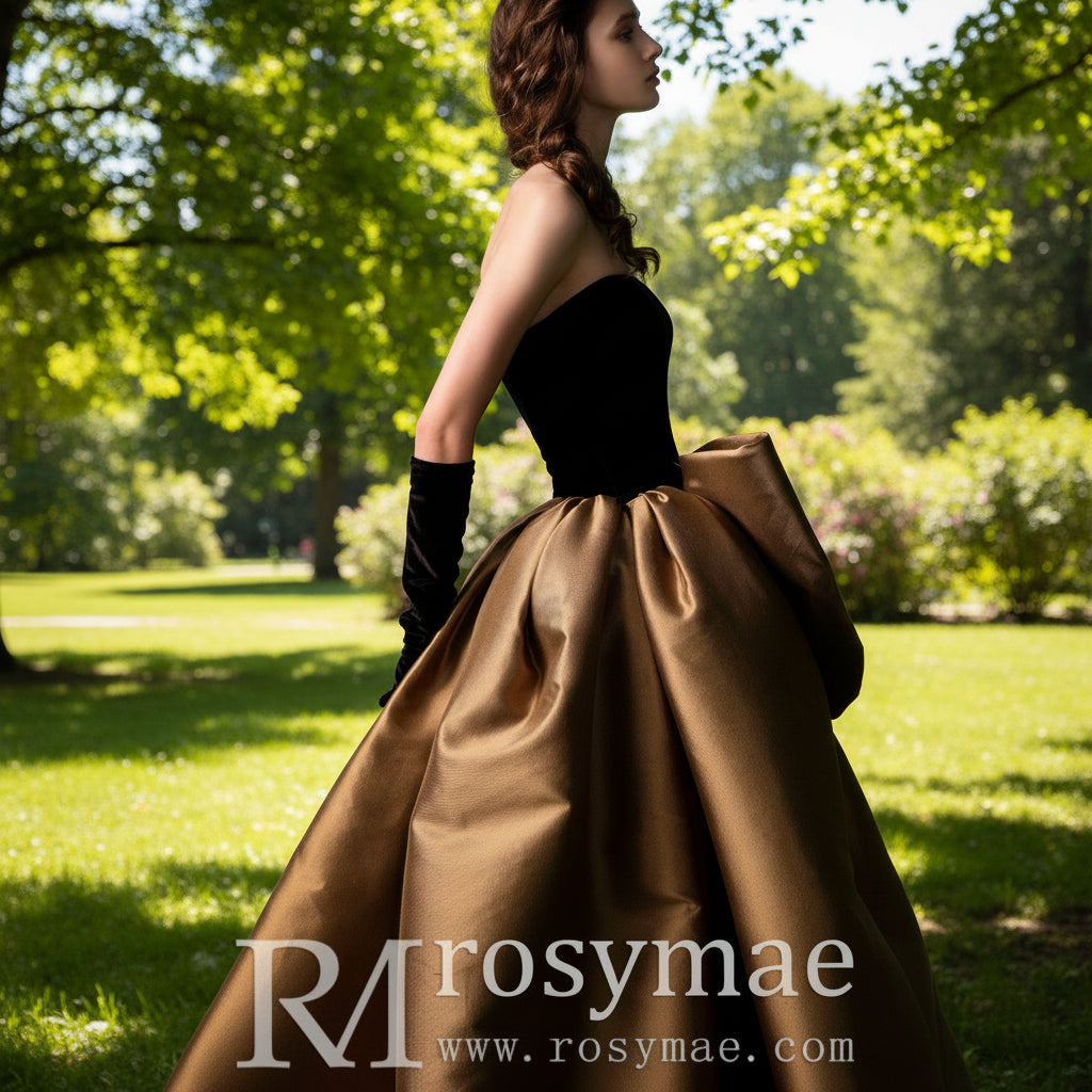 Black Velvet and Champagne Satin Long Prom Dress Formal Gown