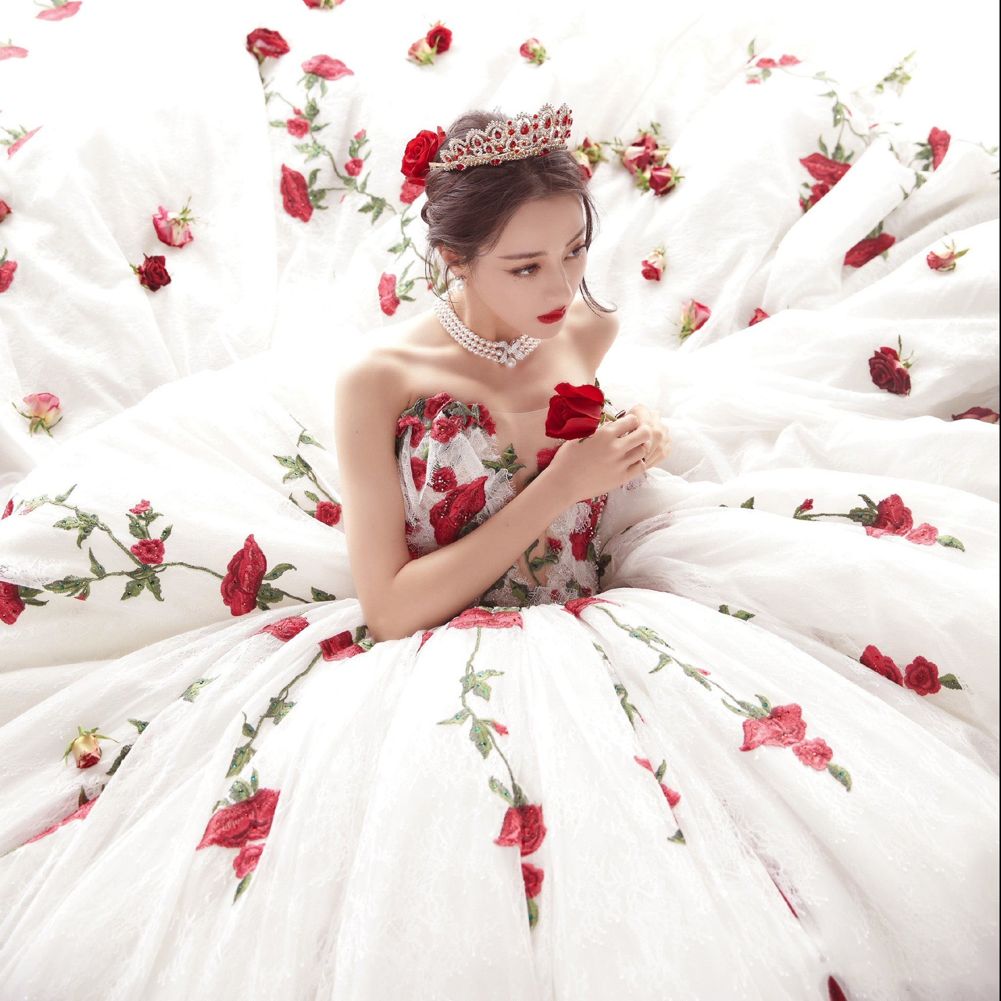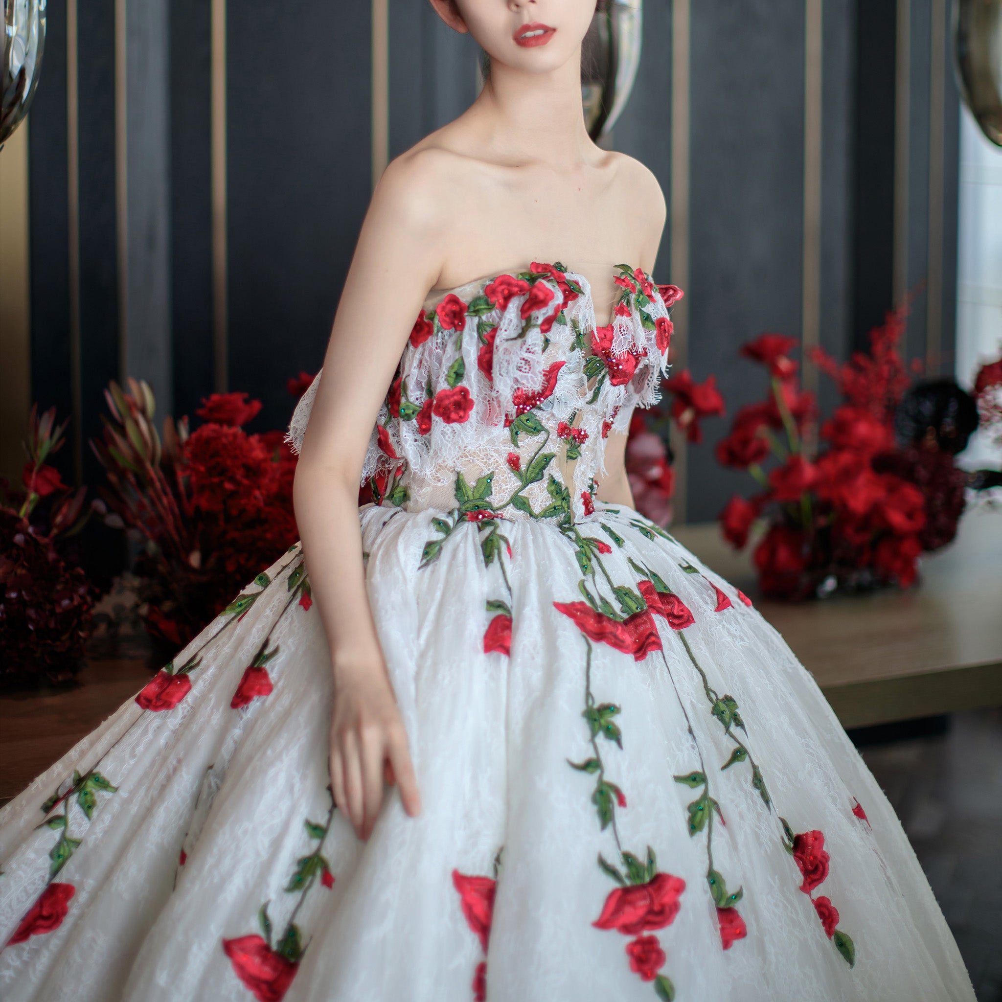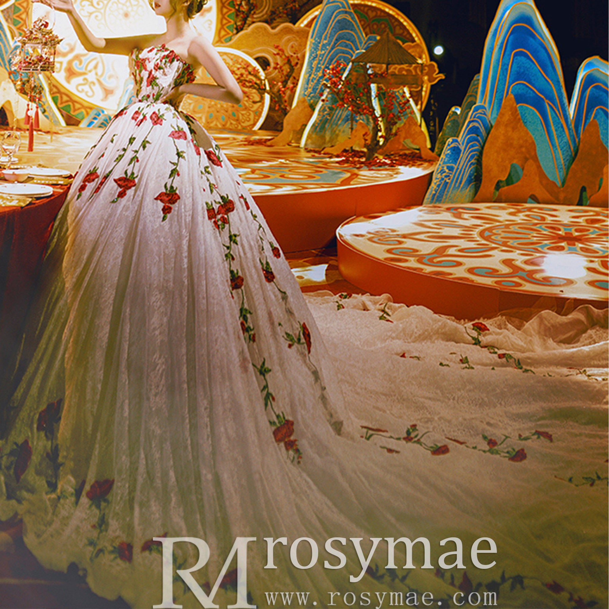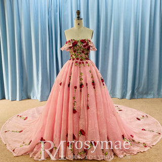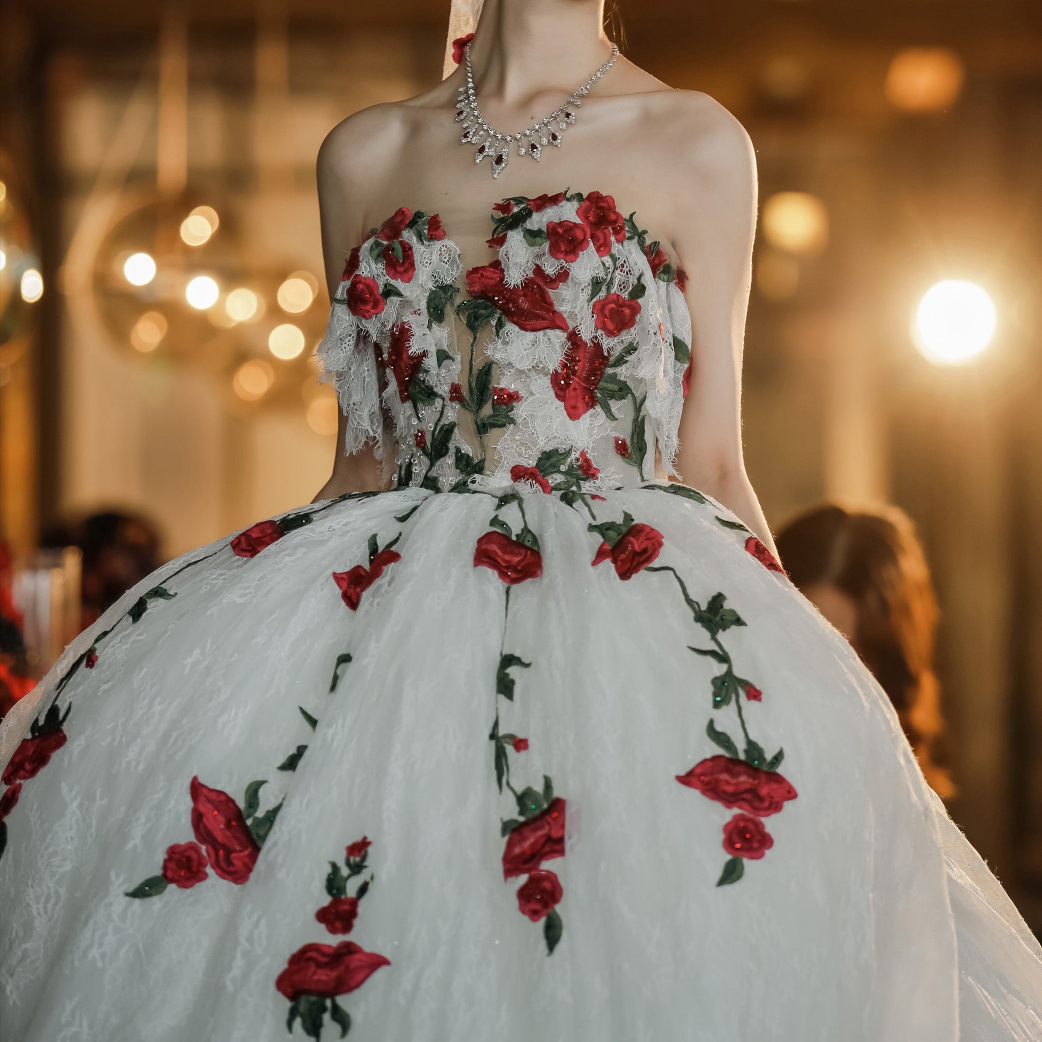 Colourful Embroidery Floral Rose Wedding Dress Quinceanera Party Gown