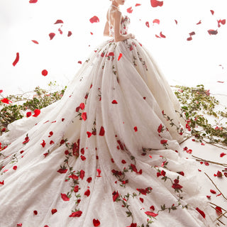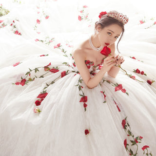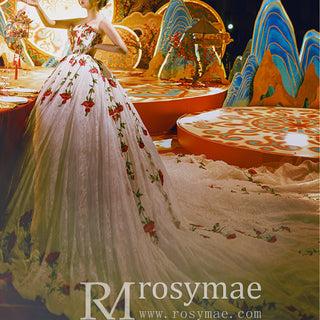 This elegant Colourful Embroidery Floral Rose Wedding Dress Quinceanera Party Gown will make you look and feel like a princess. It is made with high-quality fabrics and features a beautiful embroidered rose pattern. The perfect choice for wedding or other formal occasions.