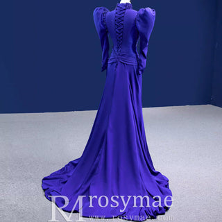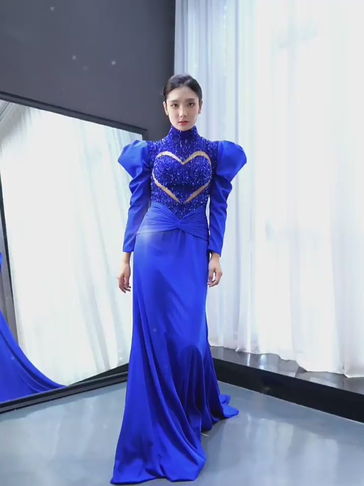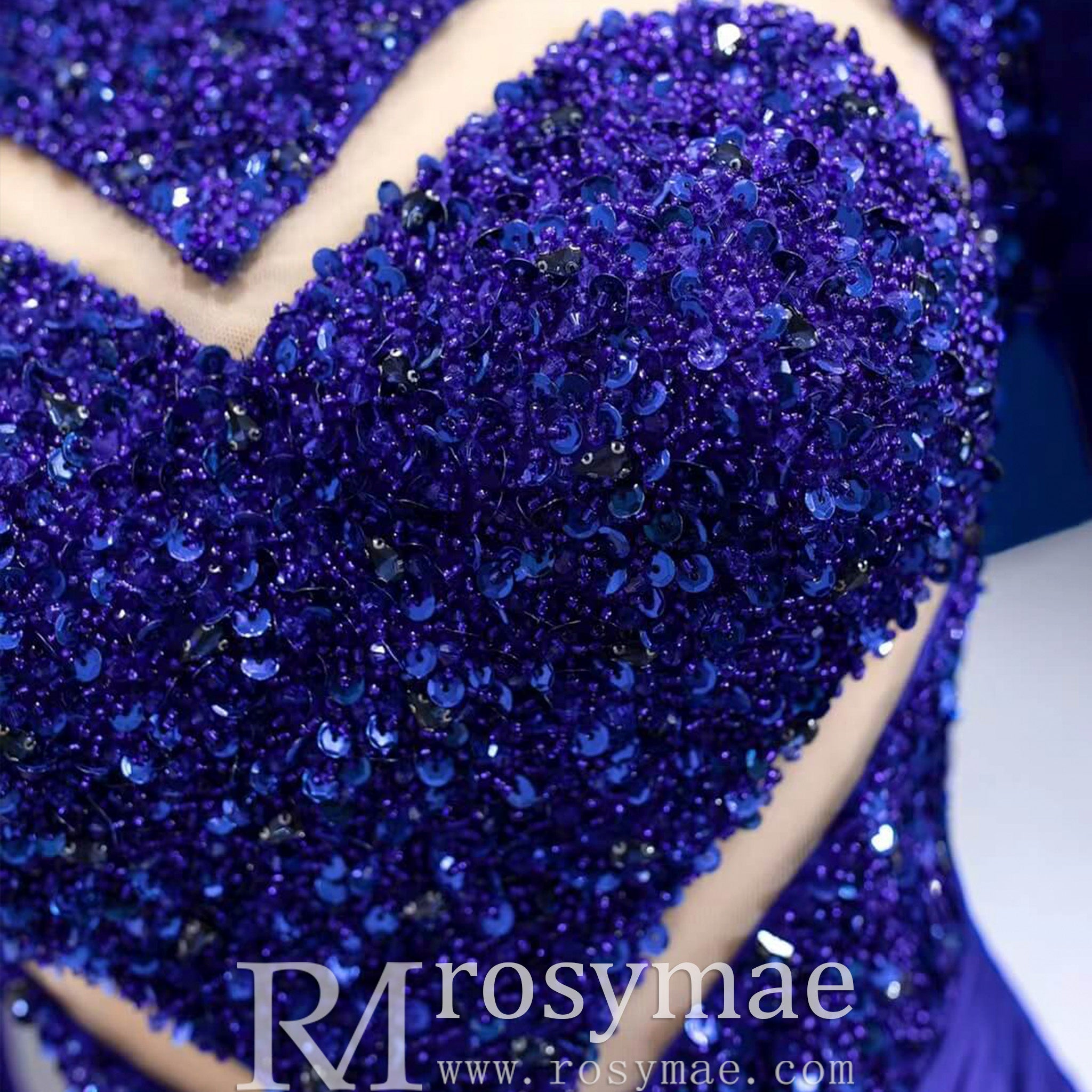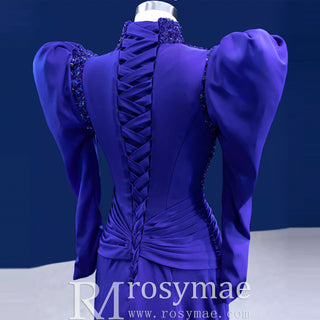 High-end Vintage Royal Blue Beading Evening Dress Prom Gown