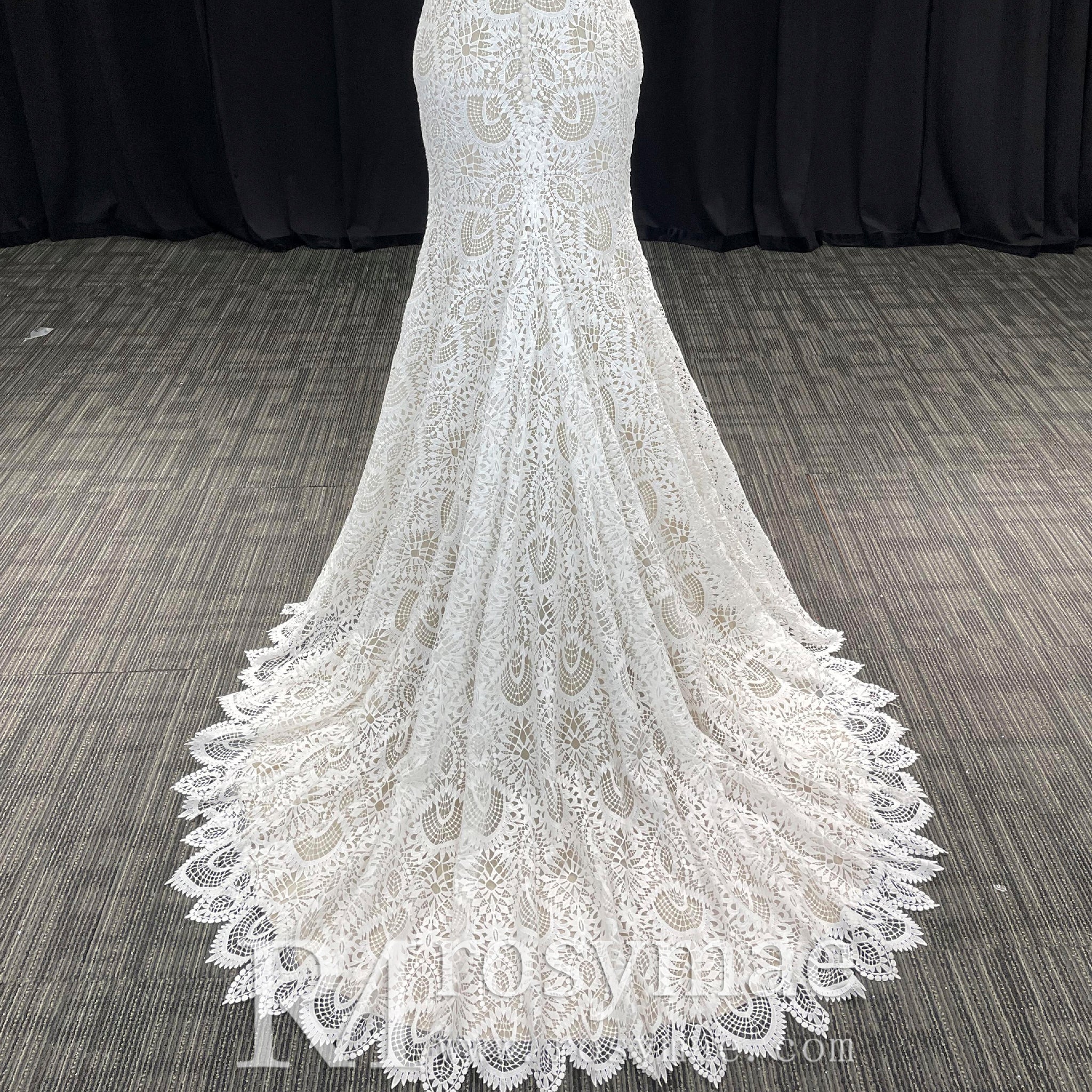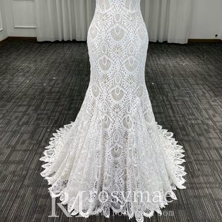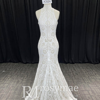 Elegant High-Neck Lace Mermaid Wedding Dresses Bridal Gowns