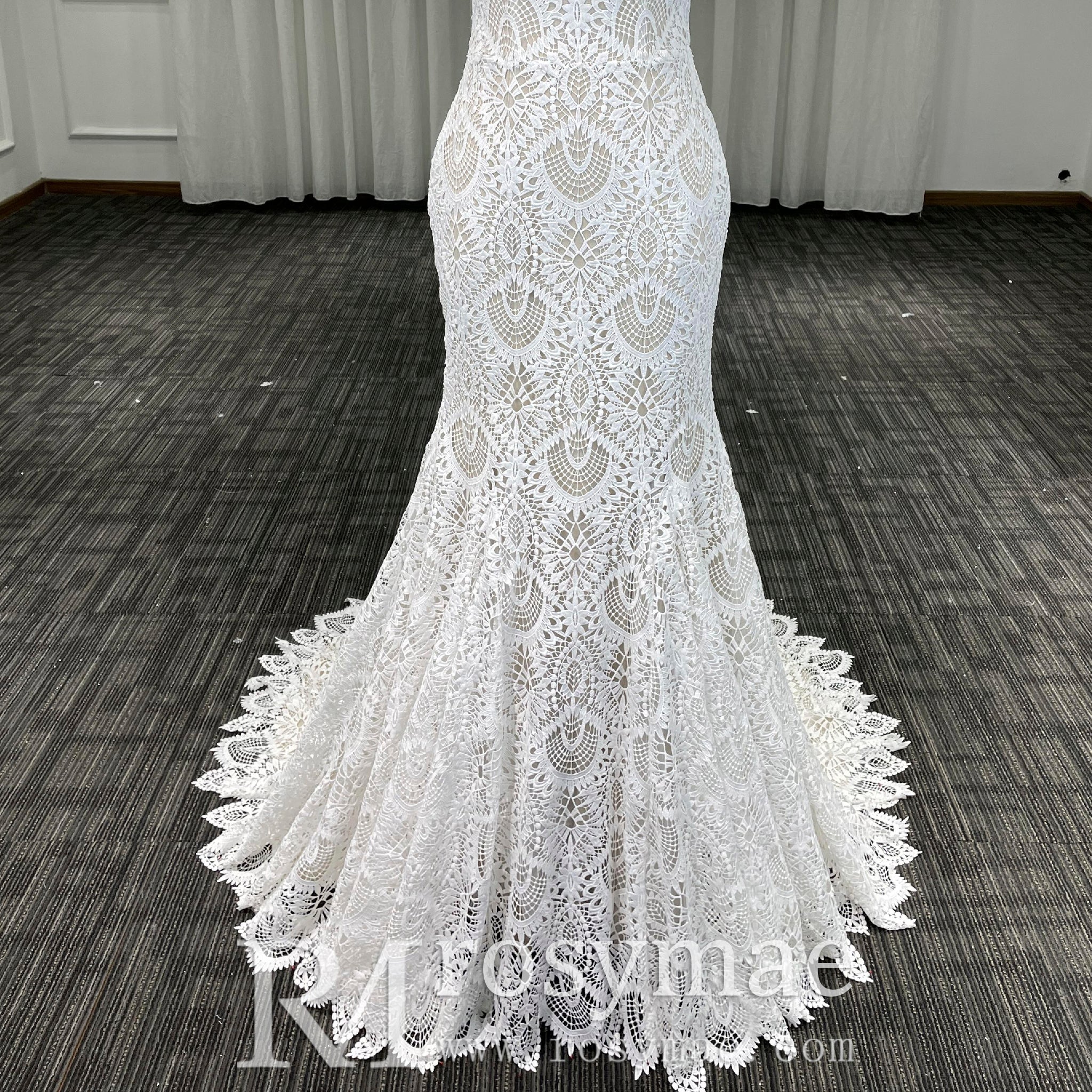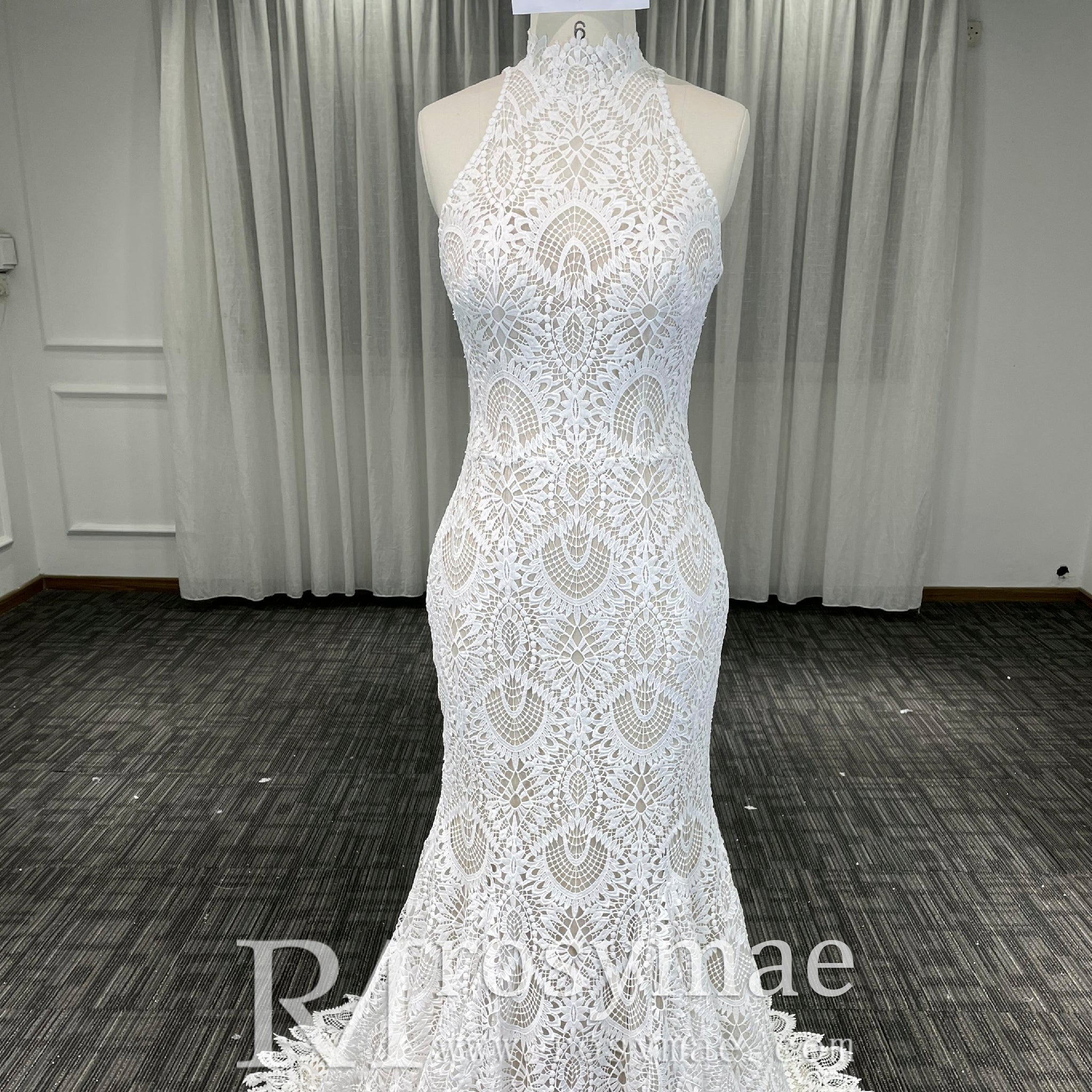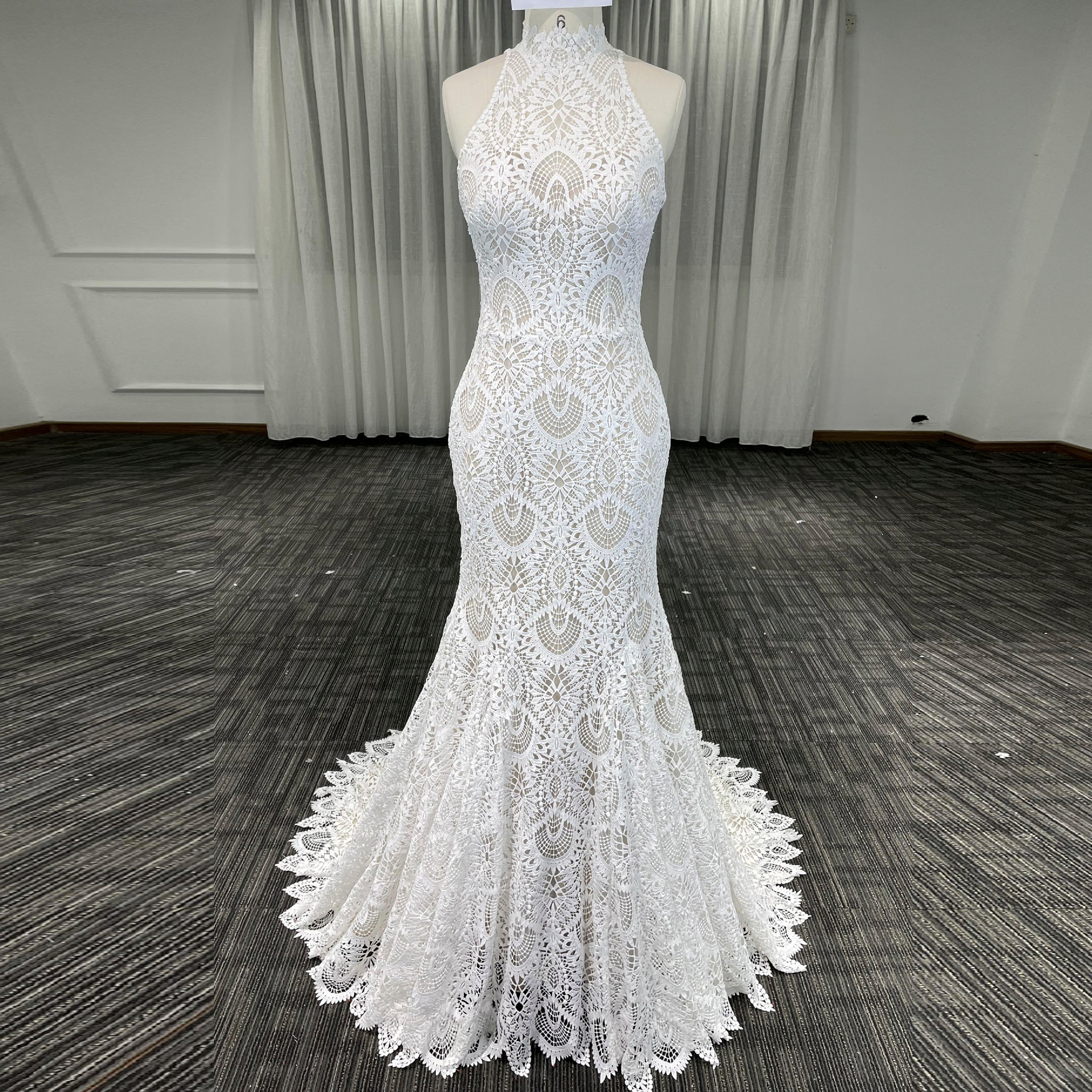 Step into your wedding day radiating grace and sophistication with this elegant high-neck lace mermaid wedding dress. Designed to create an unforgettable bridal look, the intricate floral lace overlay envelops the gown in delicate beauty, reflecting light with a subtle shimmer that enhances its timeless charm. The regal high neckline commands attention with a refined silhouette, while the understated o-neckline beneath adds a gentle contrast, blending modesty and contemporary attractive effortlessly. Expertly tailored in a mermaid silhouette, this gown sculpts and flatters your figure, emphasizing your natural curves with a sleek, graceful line that flows elegantly as you move. Crafted from premium, breathable fabrics, the dress ensures supreme comfort without sacrificing an ounce of style, so you feel radiant and confident from your walk down the aisle to the last dance of the evening. Every detail has been carefully considered, making this bridal gown perfect for brides who seek a flawless combination of classic beauty and modern sophistication. With its exquisite craftsmanship and captivating design, this dress promises to leave a lasting impression, making your special day truly exceptional.