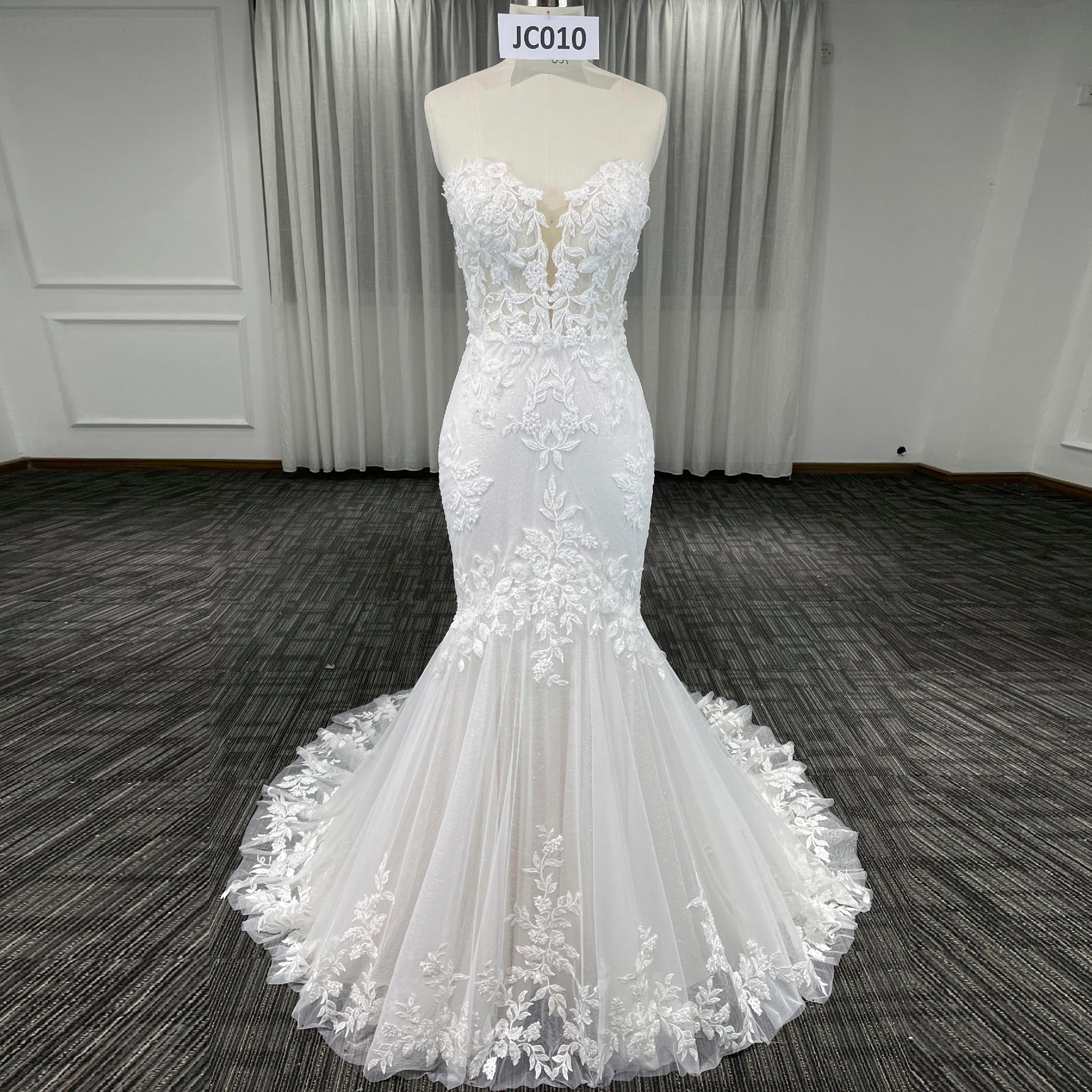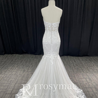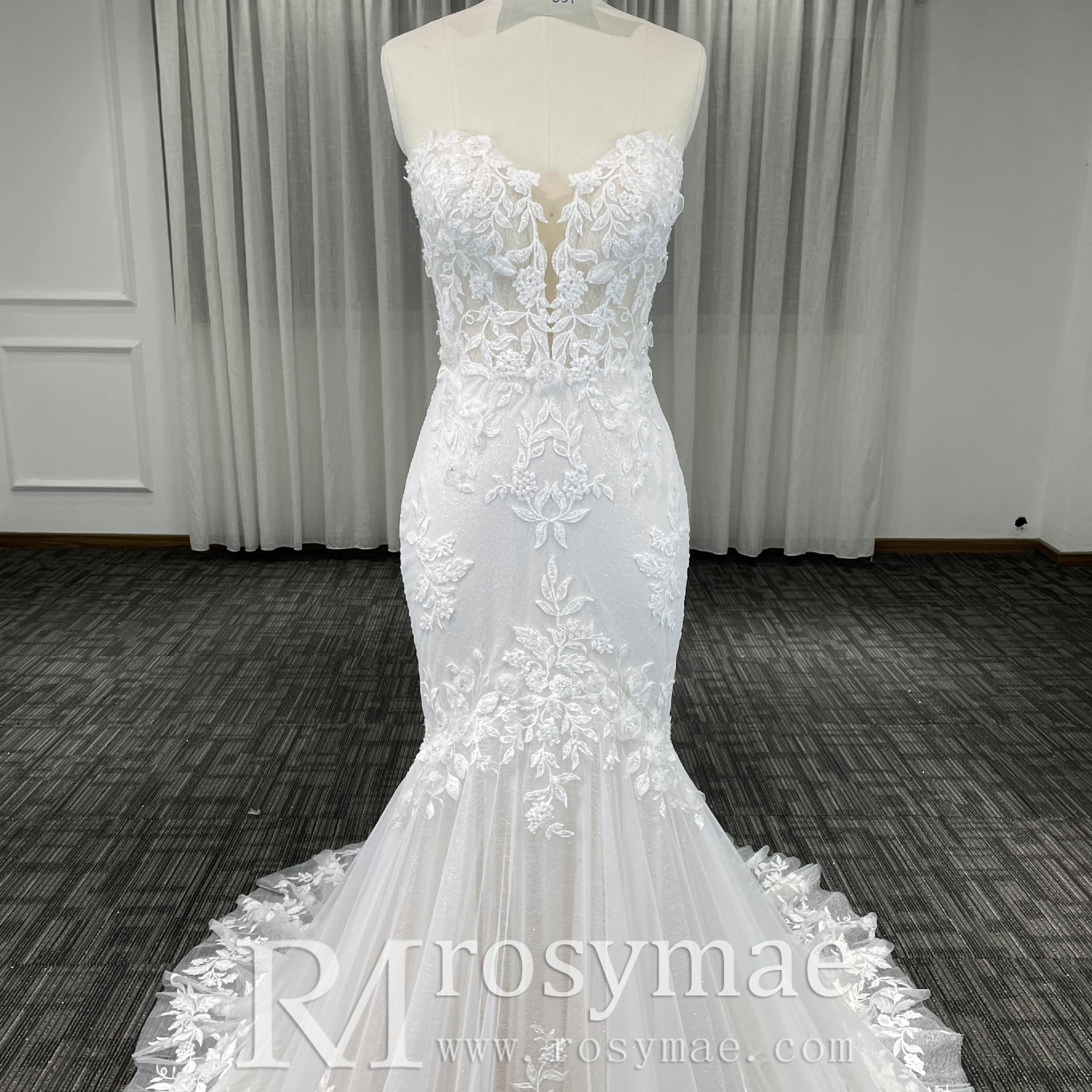 Strapless Lace Trumpet Skirt Wedding Dresses with Sweetheart Neck