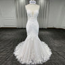 Celebrate your wedding day with a gown that seamlessly blends timeless elegance and modern romance. This strapless lace trumpet skirt wedding dress features a sweetheart neckline that beautifully frames your décolletage, offering a soft and feminine attractive. The sheer bodice, adorned with intricate lace detailing, adds a delicate touch of sophistication while hinting at subtle sensuality. The dramatic low back introduces a contemporary twist, perfectly balancing the classic appeal of the trumpet skirt, which contours your figure before gracefully flaring out to create a breathtaking silhouette. Every stitch and detail is crafted to enhance your natural beauty, ensuring a flawless fit that moves with you effortlessly throughout your celebration. Whether you’re walking down the aisle, exchanging vows, or sharing your first dance, this dress empowers you to feel radiant, confident, and unforgettable. Ideal for brides who desire a captivating and elegant look, this gown promises to elevate your special day with its perfect fusion of tradition and stylish innovation.