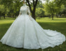 Luxury Long Sleeve Puff Ballgown Wedding Dress with Big train